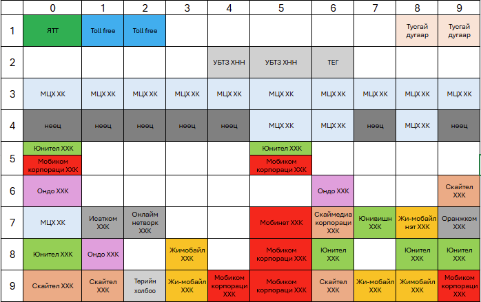 Харилцаа холбооны сүлжээний дугаарлалтын нэгдсэн төлөвлөгөөнд 2-9 хүртэлх цифрээр эхэлсэн 8 оронтой сүлжээний дугаарлалтыг үүрэн болон суурин холбооны үйлчилгээнд ашиглахаар заасан.