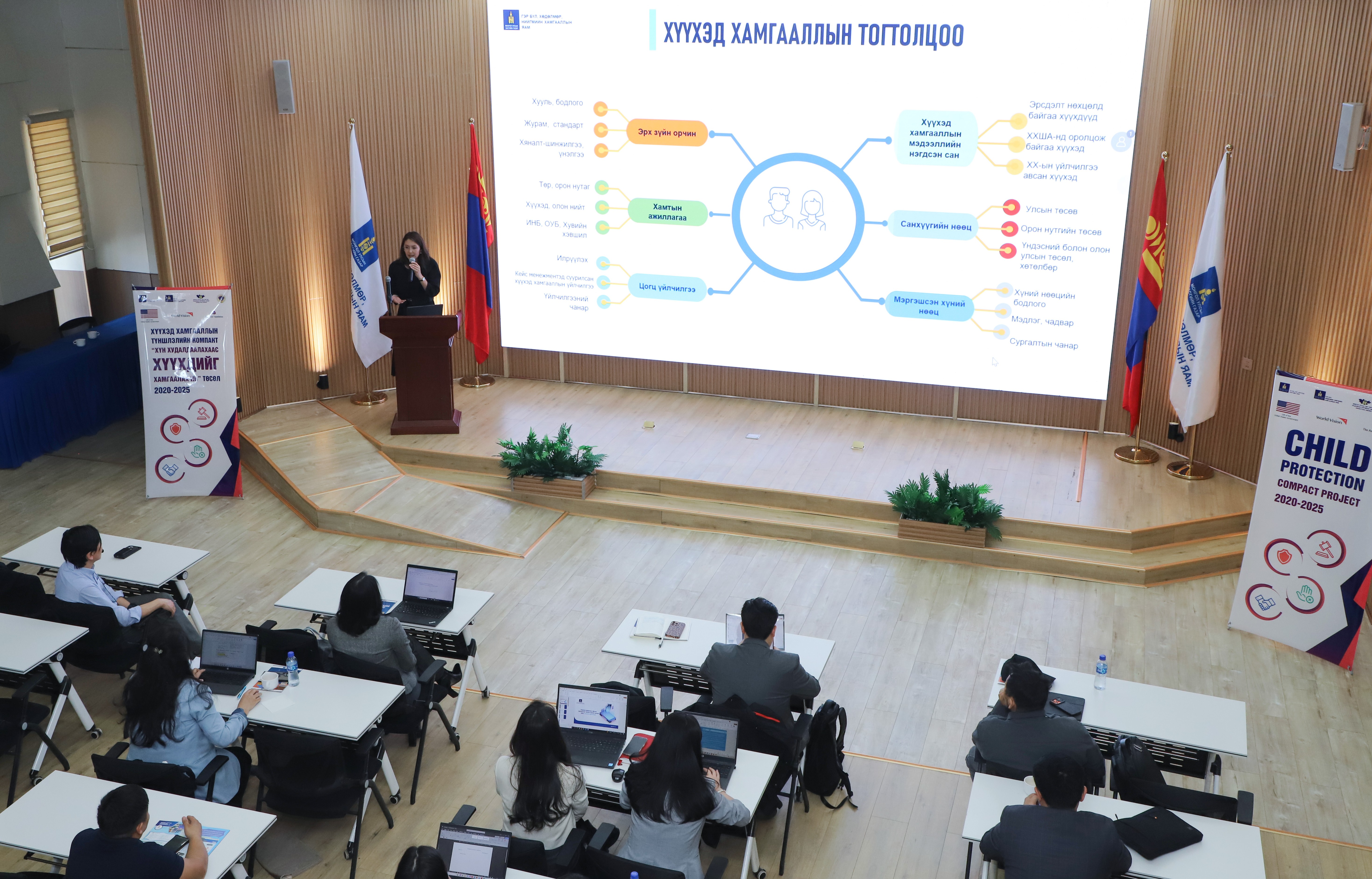 Өнөөдөр ГБХНХЯ, ЦХИХХЯ, ХЗДХЯ, ХХЗХ, Дэлхийн зөн Монгол ОУБ-ын хэрэгжүүлж буй Хүүхэд хамгааллын түншлэлийн компакт төсөлтэй хамтран хэвлэл мэдээллийн байгууллагууд болон харилцаа холбооны үйлчилгээ эрхлэгчдэд Хүүхэд хамгааллын тухай хууль болон дагалдан батлагдсан журмуудыг танилцуулж, санал солилцох уулзалтыг зохион байгууллаа.