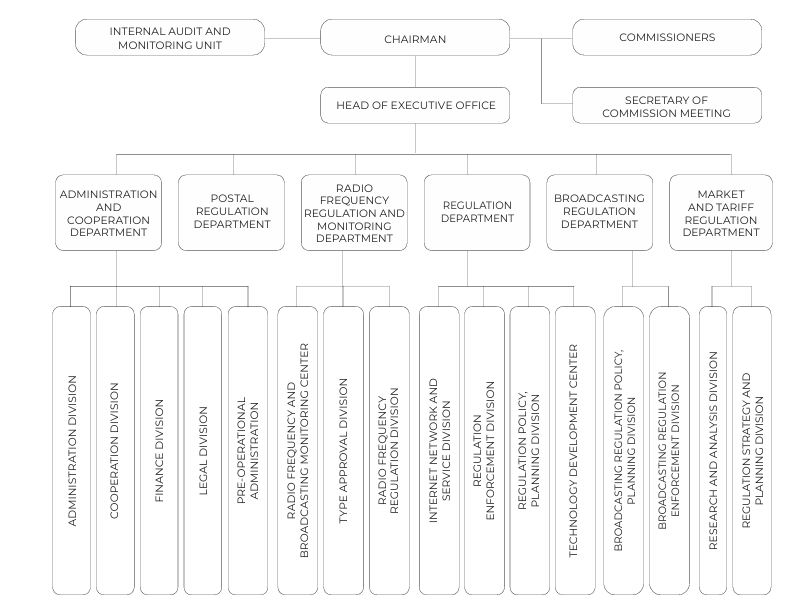 - Department of Market and Tariff Regulation-market strategy analysis, market research statistics, competition and network access, tariff and interconnection, and USO.