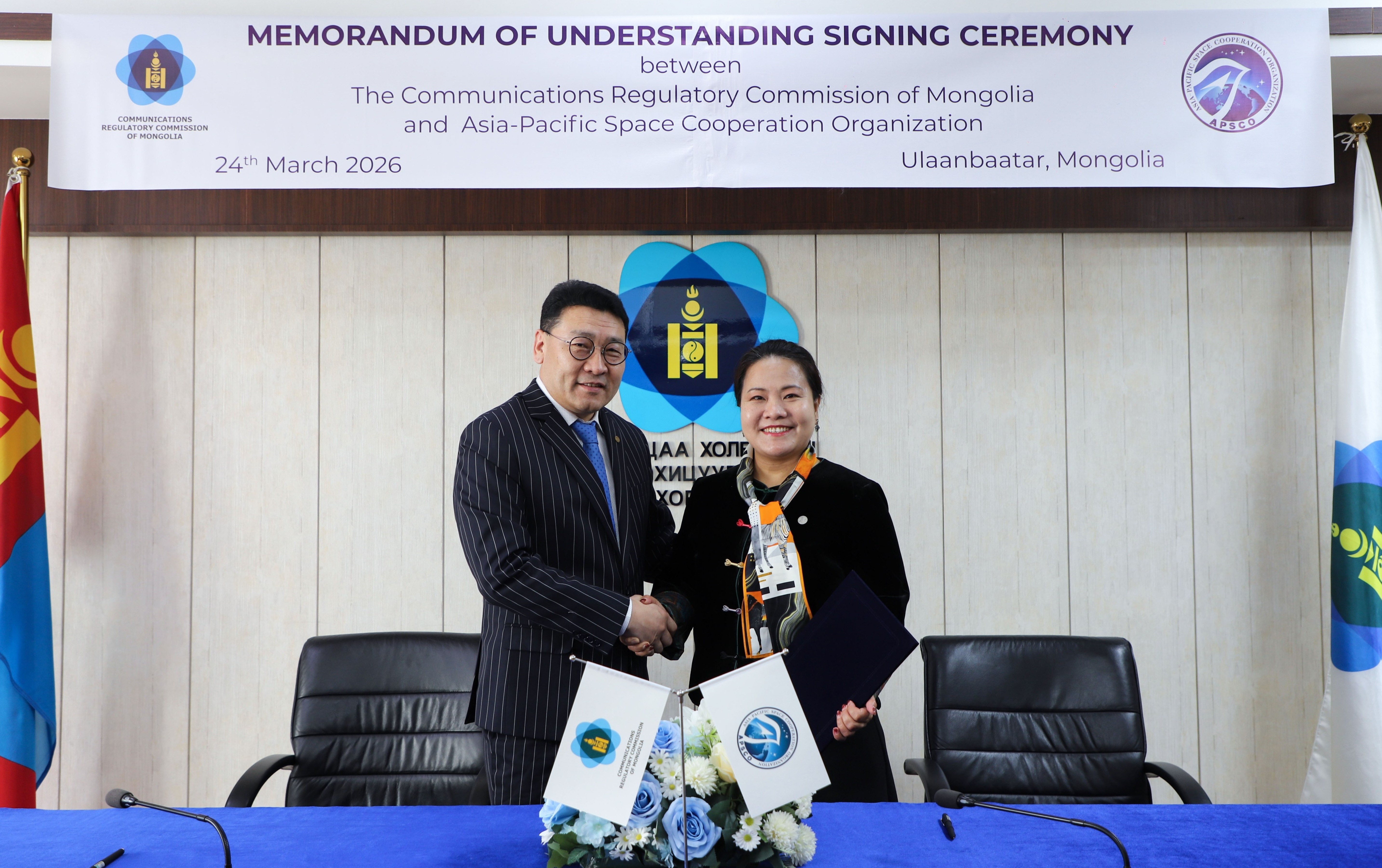 Харилцаа холбооны зохицуулах хороо нь Ази, Номхон далайн Сансрын хамтын ажиллагааны байгууллага (Asia-Pacific Space Cooperation Organization)-ын Ерөнхий нарийн бичгийн дарга доктор Жиань Хуэй (Jiang Hui) тэргүүтэй төлөөлөгчдийг 2026 оны 03 дугаар сарын 24-ний өдөр хүлээн авч, хоёр талт уулзалт зохион байгуулж, хамтын ажиллагааг бэхжүүлэх зорилгоор Харилцан ойлголцлын санамж бичиг байгууллаа.