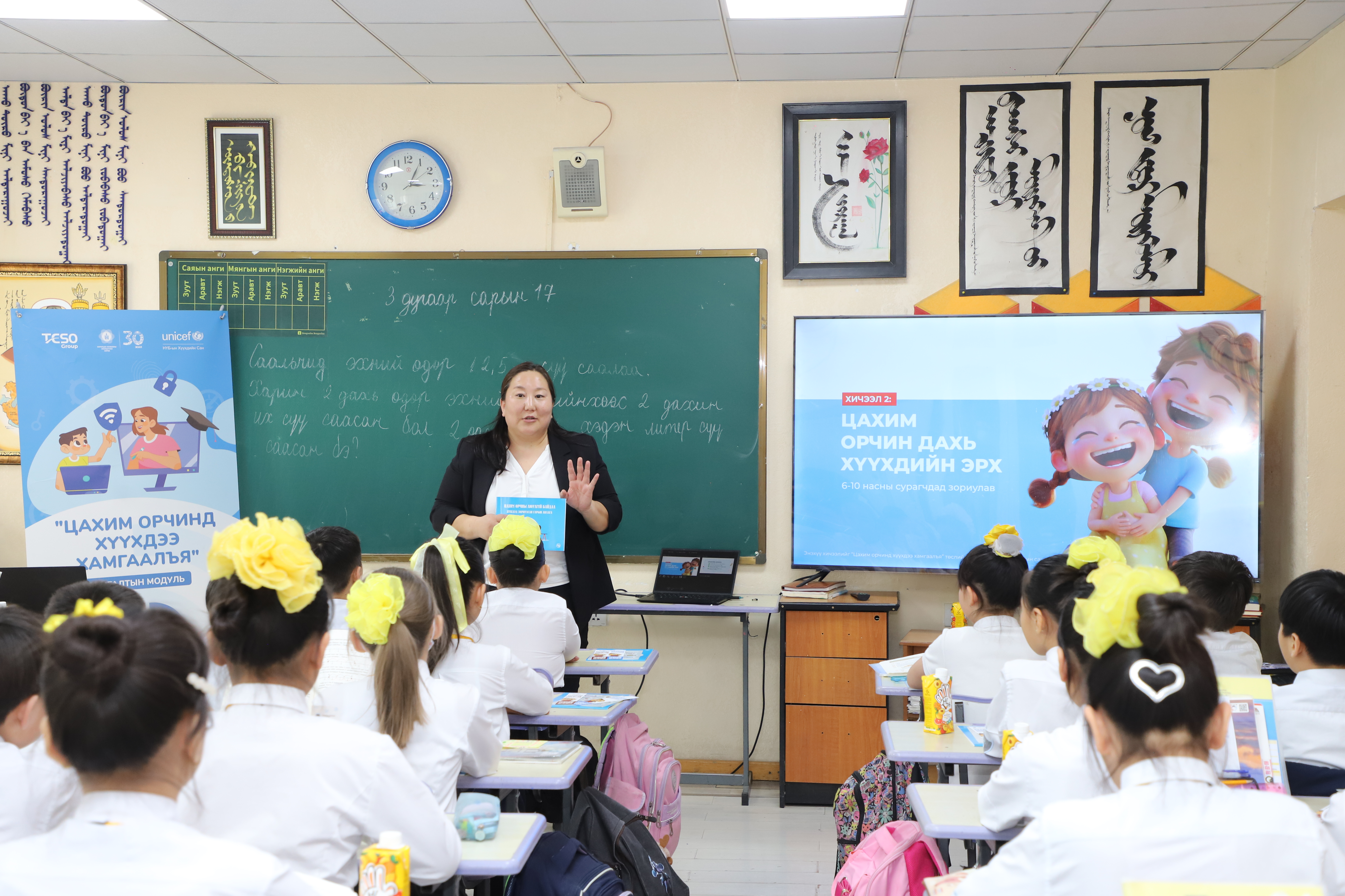Мөн өдөрлөгийн үеэр “Эерэг цахим ирээдүй” нөлөөллийн аяны талаар НҮБ-ын Хүүхдийн Сангийн Хүүхэд хамгааллын мэргэжилтэн С.Болорцэцэг, “Цахим орчинд хүүхдээ хамгаалъя” багц сургалтын хичээлийн модулийн талаар ХХЗХ-ны Зохицуулалтын хэрэгжилтийн хэлтсийн дарга А.Уранчимэг тус тус танилцуулсан бол ХХЗХ-ны Цахим орчны хүүхэд хамгааллын мэргэжилтэн Д.Дэлгэрмаа “Цахим орчин дахь хүүхдийн эрх” сэдвээр 4а ангийн сурагчдад хичээл заав.