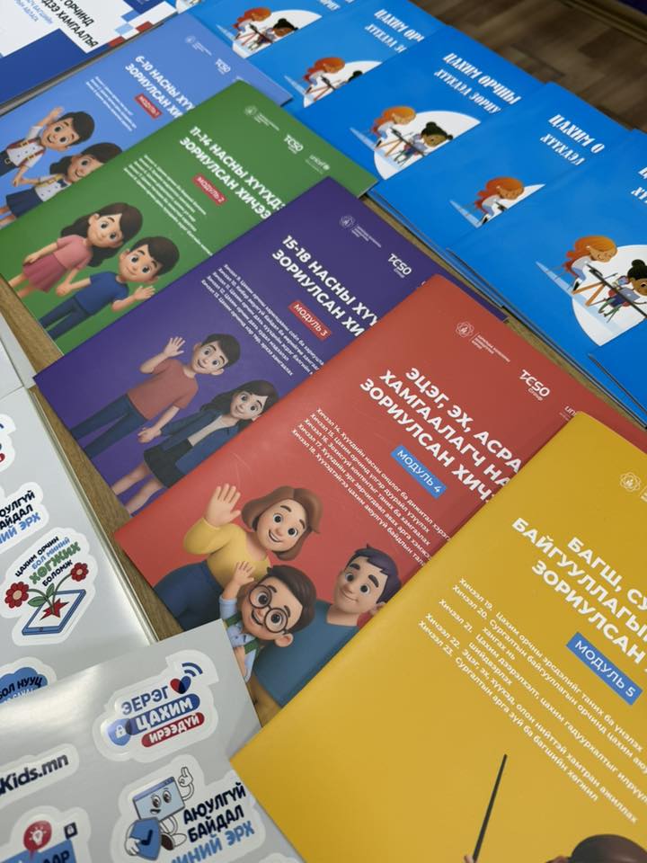 Харилцаа холбооны зохицуулах хороо (ХХЗХ) нь НҮБ-ын Хүүхдийн Сан, ТЭСО групптэй хамтран Монгол Улсын хүүхэд, өсвөр үеийнхний цахим орчны аюулгүй байдлыг хангах “Цахим орчинд хүүхдээ хамгаалъя” төслийг хэрэгжүүлж, цахим орчны зөв, зохистой хэрэглээ, цахим орчинд хүүхдийн эрхийг хангах, цахим орчны эрсдэлээс хүүхдийг хамгаалах тухай мэдлэг, ойлголт өгөх гарын авлага, бататгах видео контент бүхий багц сургалтын модулийг хүүхэд, эцэг эх, асран хамгаалагч, багш, сурган хүмүүжүүлэгч тус бүрд зориулан боловсруулан гаргаад байна.